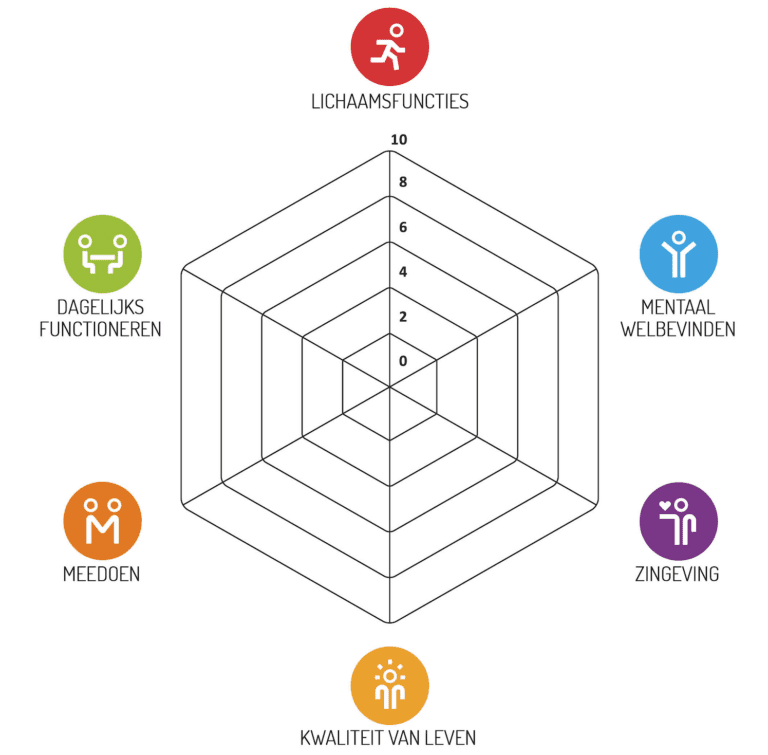 Voor mensen met chronische aandoeningen zoals diabetes of COPD kan deze manier van werken helpen om beter om te gaan met de ziekte in het dagelijks leven. Het gaat dan niet alleen om waarden zoals bloedsuiker of longfunctie, maar ook om hoe u zich voelt, hoeveel energie u heeft en wat u nodig heeft om actief te blijven. Het blijkt dat bij deze benadering ook bv uw bloeddruk of suiker waarden kunnen verbeteren.